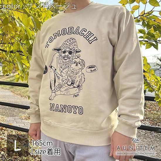 謎のおじさん×シーズーの組み合わせ。大人もさらっと着れるカレッジロゴトレーナーが登場